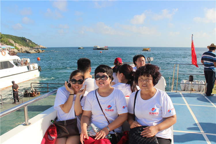 飛機(jī)從濟(jì)南遙墻機(jī)場(chǎng)直飛海南三亞,椰島碧海藍(lán)天,燦爛的陽光,純凈的空氣,帶著椰子味的海風(fēng),令第一次坐飛機(jī),第一次到海南,第一次隨著身為東海員工的兒女或伴侶的父母親朋,盡享企業(yè)幸福。脫下笨重沉悶的冬裝,換上色彩斑斕的夏裝,在海南美麗之島黃金海灘椰風(fēng)之下與蔚藍(lán)的海天來一次親密接觸........享受湛藍(lán)的天空,綿軟的沙灘,新鮮的椰子、芒果等熱帶水果。住在三亞灣四星級(jí)酒店,吃著別具椰島風(fēng)味的美食,游在碧藍(lán)的蜈支洲海濱,玩在珍稀熱帶園林呀諾達(dá),見識(shí)各呈姿態(tài)前所未見的千年古檀木、檳榔樹、蒲葵、鳥巢蕨、百年古藤、見血封喉樹等熱帶雨林植物,與父母妻兒在幽蘭深谷領(lǐng)略流泉疊瀑,在夢(mèng)幻奇谷探險(xiǎn)尋趣,與友人情侶共同穿越雨林棧道,走過幸福天道,跨越愛情門、友情門,感悟人生,別有感觸,深深感受身為東海人的幸福。游輪往來穿梭,煙波浩渺海天一色,或與愛人在情人廊拍照,或享受海鹽溫泉浴,或潛入珊瑚礁探秘海底世界,或乘坐摩托艇劃波沖浪,或者什么也不做就與親人、愛人漫步椰林、海灘,享受這一刻的靜謐,已經(jīng)足夠了。