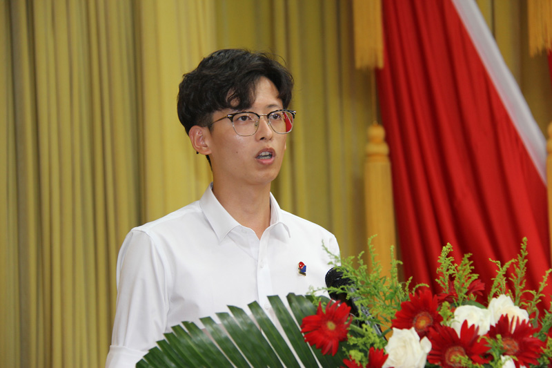在歡迎會上,集團領(lǐng)導為新入職員工頒發(fā)了東海集團徽章,新員工代表靳建強上臺暢談了自己入職培訓以來的感受,和自身對在東海集團工作美好未來的憧憬,表達了熱愛東海、奉獻東海的決心和信心。