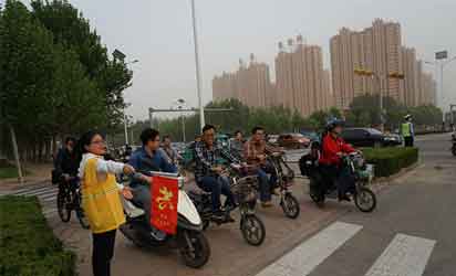 “請您停在白線后等待,謝謝配合?!薄按鬆?,綠燈還沒亮,請不要闖紅燈,這樣很危險?!?月4日,在東風(fēng)路廣川大道路口,素日里的辦公室職工主動走上街頭,身穿熒光馬甲,手持小紅旗,當起了交通志愿者,耐心地勸導(dǎo)行人文明出行。
