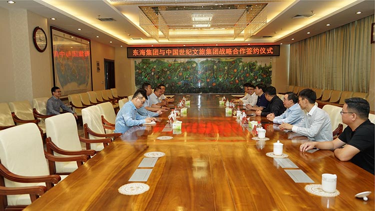 簽約儀式前,雙方舉行了座談會。在輕松愉快的氣氛中,魏建民首先致辭,他在簡要介紹東海集團(tuán)情況后表示,東海集團(tuán)非常珍惜本次合作,此次簽約,標(biāo)志著東海集團(tuán)與中國世紀(jì)文旅集團(tuán)合作的開始。今后我們將以此為起點(diǎn),按照優(yōu)勢互補(bǔ)的原則,探討多層次、多角度與中國世紀(jì)文旅集團(tuán)的長期戰(zhàn)略合作,努力達(dá)到雙贏。