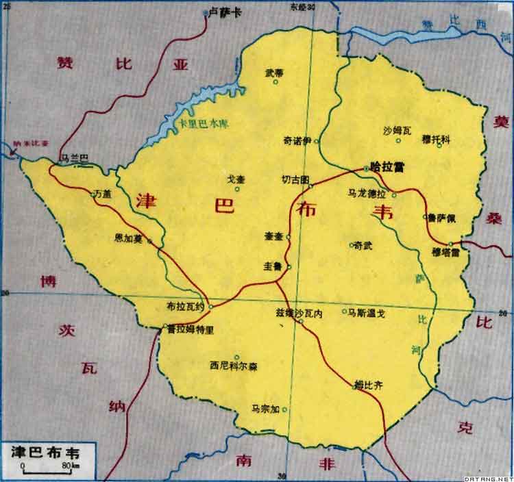 (知識(shí)普及:津巴布韋是非洲東南部一個(gè)比較古老的內(nèi)陸國(guó)家,東鄰莫桑比克,南接南非,西北與贊比亞相連。1890年,淪為英國(guó)殖民地。經(jīng)過(guò)長(zhǎng)達(dá)近百年的斗爭(zhēng),于1980年4月18日取得獨(dú)立,成立津巴布韋共和國(guó),同日,津巴布韋同中國(guó)建交。中津兩國(guó)領(lǐng)導(dǎo)人頻繁互訪,友好合作關(guān)系順利穩(wěn)定發(fā)展。兩國(guó)經(jīng)貿(mào)合作正呈現(xiàn)出快速健康發(fā)展新局面,雙邊貿(mào)易額迅速增加,近年來(lái),中國(guó)已成為津巴布韋第三大貿(mào)易伙伴,僅次于南非和歐盟。穆加貝總統(tǒng)在中津建交當(dāng)年就來(lái)華訪問(wèn),以后又多次訪華,成為訪華次數(shù)最多的非洲國(guó)家領(lǐng)導(dǎo)人之一。津巴布韋是非洲工業(yè)較發(fā)達(dá)的國(guó)家,制造業(yè)、農(nóng)業(yè)、礦業(yè)為經(jīng)濟(jì)三大支柱,津巴布韋為世界第三大煙草出口國(guó),并以出產(chǎn)優(yōu)質(zhì)鱷魚皮而聞名,有“鱷魚之鄉(xiāng)”的譽(yù)稱。該國(guó)自然資源豐富,工農(nóng)業(yè)基礎(chǔ)較好,但水力資源比較貧乏)