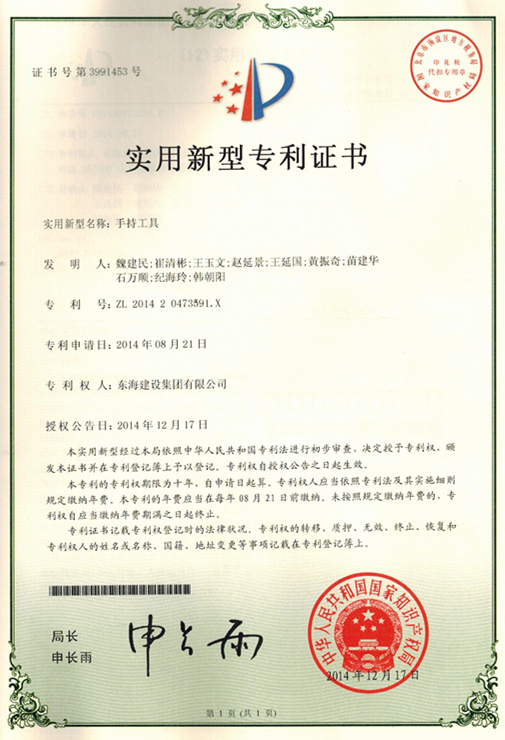 東海集團自2014年度以來,先后向國家知識產(chǎn)權(quán)局申報了多項專利。截止8月底,已成功獲得國家知識產(chǎn)權(quán)局頒發(fā)的專利證書9本,其中發(fā)明專利2項,實用新型專利7項,實現(xiàn)了我集團專利發(fā)明和專利證書申報方面的重大突破。 為了不斷提升企業(yè)的核心競爭力,集團領(lǐng)導(dǎo)高度重視對傳統(tǒng)建筑產(chǎn)業(yè)的改造和技術(shù)研發(fā)創(chuàng)新、新工藝探索總結(jié)及其推廣應(yīng)用,在《企業(yè)管理制度》中專門制定了《注冊類考試及技術(shù)職稱、技術(shù)創(chuàng)新獎勵補助制度》,并在工作實踐中積極貫徹落實。去年以來,集團相關(guān)部門在團隊技術(shù)人員的指導(dǎo)下,對近年來研發(fā)、摸索并經(jīng)實踐證明行之有效的建筑材料改進、建筑工具創(chuàng)新等成果進行了系統(tǒng)性地總結(jié),形成了具有自主知識產(chǎn)權(quán)的技術(shù)信息,按照相關(guān)程序進行了申報,并最終獲得審批。