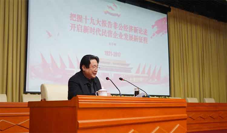 趙金剛以《把握十九大報(bào)告非公經(jīng)濟(jì)新論述 開啟新時(shí)代民營企業(yè)發(fā)展新征程》為題,圍繞“認(rèn)真領(lǐng)會(huì)、牢牢把握‘兩個(gè)毫不動(dòng)搖’,放心放膽放手做大做強(qiáng)民營企業(yè)”和“認(rèn)真學(xué)習(xí)、牢牢把握十九大報(bào)告中關(guān)于新時(shí)代民營經(jīng)濟(jì)的新論述,不忘初心、繼續(xù)前行”兩個(gè)方面,和集團(tuán)員工共同分享了自己的學(xué)習(xí)體會(huì)和深刻感悟。
