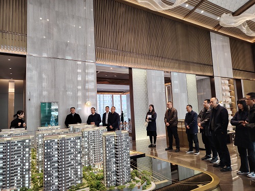 考察團(tuán)先后參觀了東海國際營銷中心、實(shí)景示范區(qū)、下沉式庭院、業(yè)主服務(wù)中心、藝術(shù)車庫、精裝樣板間等核心區(qū)域,對(duì)項(xiàng)目實(shí)體呈現(xiàn)的精工品質(zhì)贊不絕口。