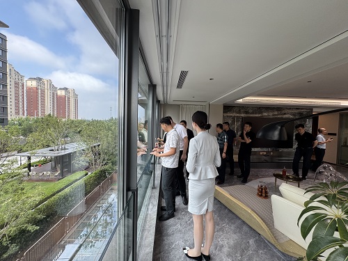 考察團(tuán)一行先后參觀了東海國(guó)際的景觀示范區(qū)、精裝樣板間、藝術(shù)車庫(kù)、超配式業(yè)主服務(wù)中心等核心區(qū)域,重點(diǎn)考察了戶型空間的功能性優(yōu)化、智能家居系統(tǒng)的集成方案等關(guān)鍵領(lǐng)域,對(duì)項(xiàng)目展現(xiàn)出的精細(xì)化、人性化、科技化、綠色化建設(shè)成果給予高度評(píng)價(jià)。