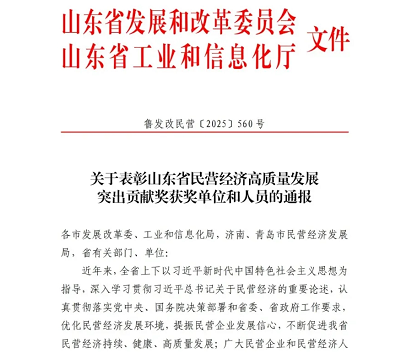 魏建國董事長榮獲“山東省民營經(jīng)濟(jì)高質(zhì)量發(fā)展突出貢獻(xiàn)個(gè)人”榮譽(yù)稱號(hào)