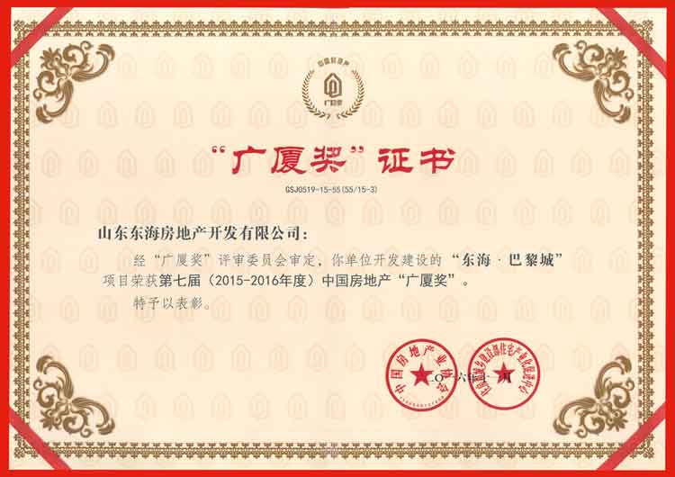 東?!ぐ屠璩牵堑轮菔讉€(gè)榮獲國家行業(yè)最高獎“廣廈獎”和2A級住宅小區(qū)項(xiàng)目;