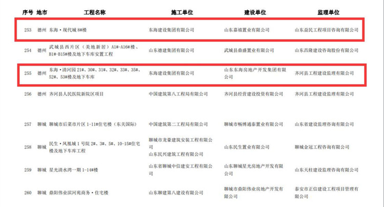 去年底,在省住房和城鄉(xiāng)建設(shè)廳組織的“2018年度省房屋市政施工安全文明示范工地”驗收評審中,由東海建設(shè)集團(tuán)承建的禹城東?!がF(xiàn)代城項目、齊河?xùn)|?!で搴訄@項目,經(jīng)專家組的現(xiàn)場考評和省住建廳集中公示,最終,順利通過評審。