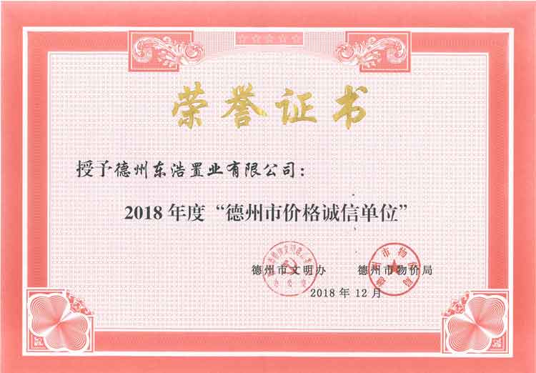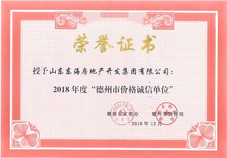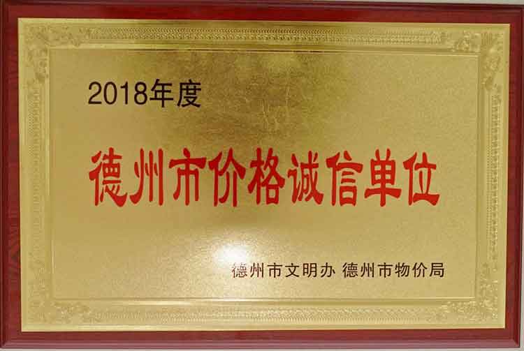 東海集團旗下三個子公司喜獲2018年度德州市價格誠信單位