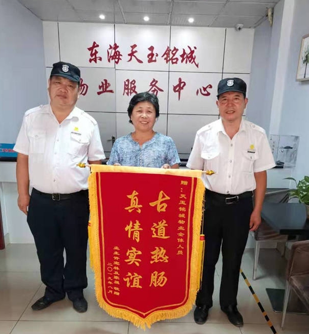 8月14日,天玉銘城物業(yè)服務(wù)中心收到了15號樓薛阿姨送來的一面“古道熱腸,真情實意”的錦旗,以表示對天玉銘城全體工作人員感謝。