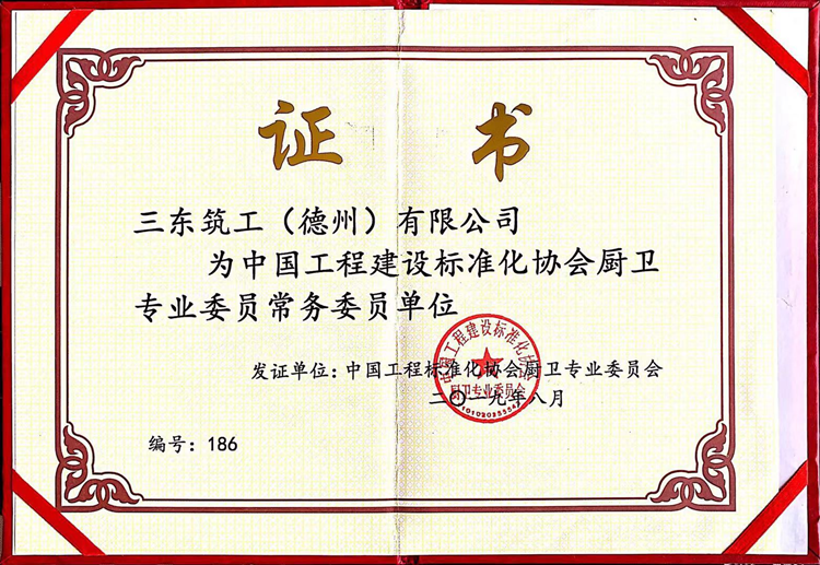 三東筑工自廚衛(wèi)委下發(fā)了關(guān)于征集科研、院校、設(shè)計(jì)、施工、房地產(chǎn)開(kāi)發(fā)及生產(chǎn)企業(yè)等單位作為會(huì)員單位參加廚衛(wèi)委工作的通知后,首先獲得了國(guó)家級(jí)消防檢驗(yàn)中心頒發(fā)的產(chǎn)品檢驗(yàn)報(bào)告,隨后積極對(duì)接廚衛(wèi)委相關(guān)負(fù)責(zé)人,準(zhǔn)備相關(guān)征集資料,填寫(xiě)廚衛(wèi)委會(huì)員單位登記表,提交到廚衛(wèi)委秘書(shū)處審核。最終,三東筑工憑借自身良好的條件、一流的產(chǎn)品品質(zhì),成為中國(guó)工程建設(shè)標(biāo)準(zhǔn)化協(xié)會(huì)廚衛(wèi)專業(yè)委員會(huì)常務(wù)委員單位。
