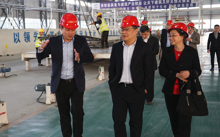 在三東筑工,沈沉實地參觀了裝配式建筑生產(chǎn)車間,詳細了解了預制構件模板制作生產(chǎn)全過程,他對東海集團高瞻遠矚發(fā)展裝配式建筑的戰(zhàn)略眼光高度贊揚。