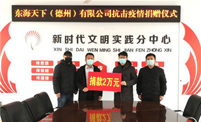2月19日,東海天下(德州)實業(yè)有限公司向平原縣三唐鄉(xiāng)人民政府捐贈2萬元,助力打贏疫情防控攻堅戰(zhàn)。