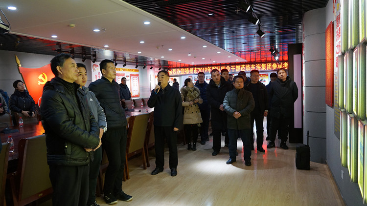 12月31日下午,由德州市退役軍人事務局組織的“2019年軍隊轉業(yè)干部培訓班”40余名學員,到東海集團參觀見學。轉業(yè)干部們先后參觀了集團企業(yè)文化展示大廳和黨員活動室,觀看了企業(yè)宣傳片。集團黨委書記蘇振水陪同參觀,并向大家介紹了企業(yè)發(fā)展和企業(yè)黨建情況。