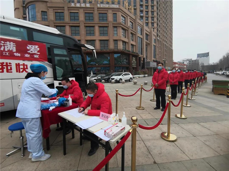 2月24日上午,一輛懸掛著“行動起來,讓世界充滿愛”紅色條幅的無償獻血車??吭跂|海巴黎城南門廣場,車前整齊排列著早已等候的長江物業(yè)各部門、各項目人員。山東長江物業(yè)組織員工開展義務(wù)獻血活動,60名員工走上獻血車,用熱血匯聚愛心,傳遞生命的希望。