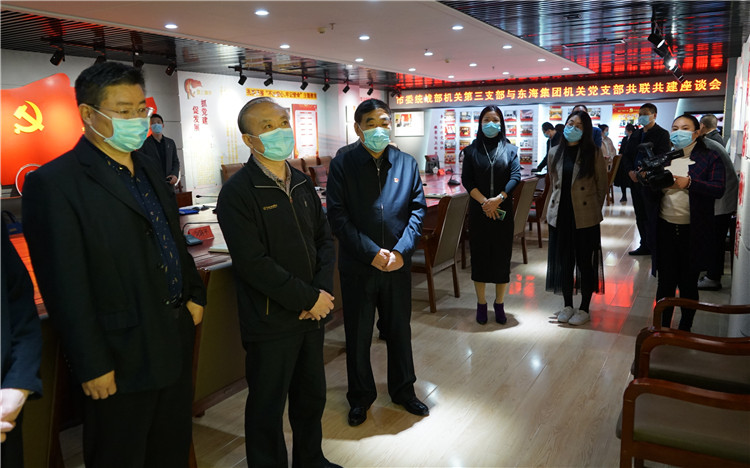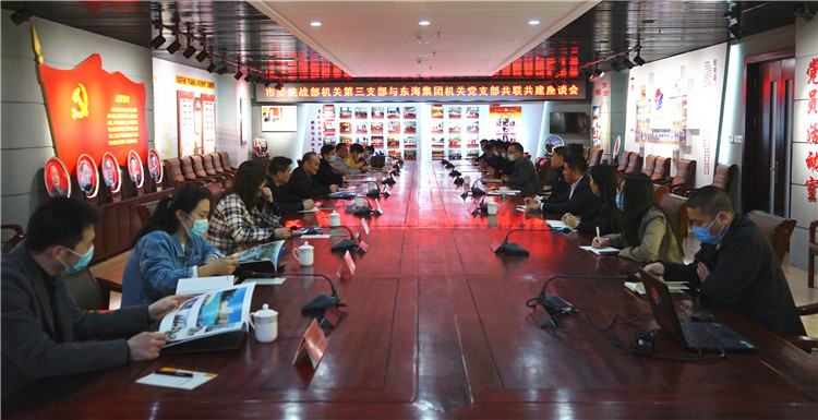 4月3日,德州市委統(tǒng)戰(zhàn)部機關(guān)第三黨支部與東海集團機關(guān)黨支部“共聯(lián)共建”座談會在東海集團召開,雙方?jīng)Q定,本著資源共享、優(yōu)勢互補、注重實效的原則,以黨建為切入點,締結(jié)更加緊密的合作關(guān)系,實現(xiàn)共贏促發(fā)展。市委統(tǒng)戰(zhàn)部副部長、機關(guān)黨委副書記王澤森,東海集團黨委書記蘇振水分別帶領(lǐng)兩個支部全體黨員參加活動。