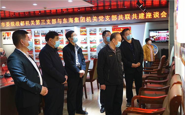 參觀結(jié)束后,召開了黨建“共聯(lián)共建”座談會,東海集團黨委書記蘇振水首先致辭,他向大家簡要介紹了東海集團企業(yè)發(fā)展情況和黨建工作情況,并代表集團感謝市委統(tǒng)戰(zhàn)部這些年來對企業(yè)發(fā)展的關(guān)心和支持。