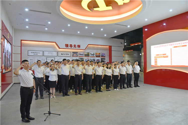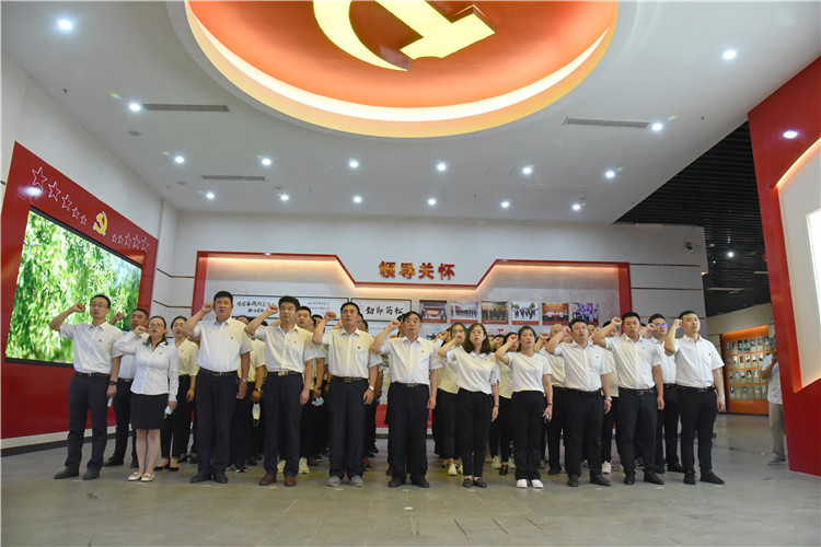 “我志愿加入中國(guó)共產(chǎn)黨,擁護(hù)黨的綱領(lǐng),遵守黨的章程……”這是東海集團(tuán)百余名黨員莊嚴(yán)面向黨旗重溫入黨誓詞的一個(gè)場(chǎng)景。為慶祝建黨99周年,豐富黨日活動(dòng)內(nèi)容,深化“不忘初心牢記使命”主題教育,6月28日上午,東海集團(tuán)黨委組織百余名黨員赴樂(lè)陵冀魯邊區(qū)革命紀(jì)念館開(kāi)展“傳承英烈精神,踐行初心使命”主題黨日活動(dòng),讓全體黨員接受革命傳統(tǒng)和愛(ài)國(guó)主義教育,深切緬懷革命先烈豐功偉績(jī),進(jìn)一步增強(qiáng)了黨員的榮譽(yù)感和責(zé)任感。