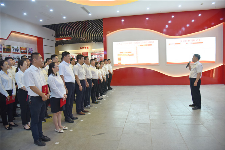 參觀結(jié)束后,全體黨員懷著滿(mǎn)心的激動(dòng)和滿(mǎn)腔的激情,面向鮮紅的黨旗,莊嚴(yán)舉起右手,鏗鏘有力的宣誓聲回蕩在耳邊,大家重溫入黨誓詞,表達(dá)對(duì)黨的忠心。