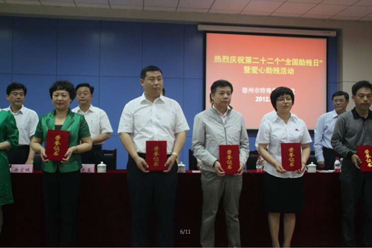 自從2011年以來,集團(tuán)共向德州市特殊教育學(xué)校捐款6萬元,向殘疾孩子們獻(xiàn)出友愛之心,為殘疾孩子創(chuàng)造美好幸福的未來。支持殘疾教育事業(yè)的發(fā)展。圖為在第22個(gè)“全國助殘日”暨愛心助殘活動中集團(tuán)總經(jīng)理魏建民出席捐贈儀式并現(xiàn)場捐款。